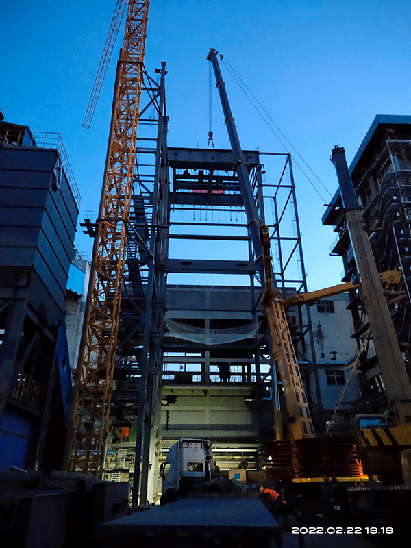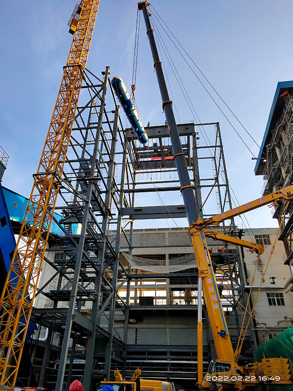 迪爾集團有限公司第三公司承建的桓臺經(jīng)濟開發(fā)區(qū)熱力有限公司新建7#鍋爐施工項目,7#鍋爐汽包于2022年2月22日18時18分順利吊裝完成。