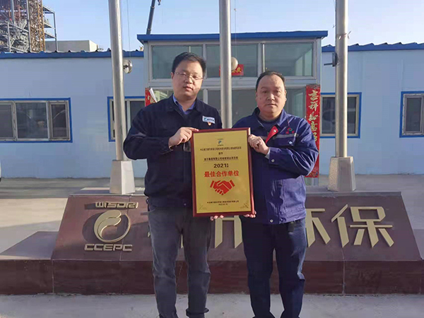迪爾集團(tuán)有限公司第三公司承建的哈密潤(rùn)達(dá)嘉能發(fā)電有限公司潔能綜合利用 2×135MW 發(fā)電項(xiàng)目全體人員不畏艱難、同心協(xié)力,保質(zhì)保量完成各項(xiàng)節(jié)點(diǎn),贏得總承包單位的一致好評(píng)??偝邪鼏挝恢幸蹦戏蕉际协h(huán)保工程技術(shù)股份有限公司授予我項(xiàng)目部2021年度“最佳合作單位”榮譽(yù)稱號(hào)。