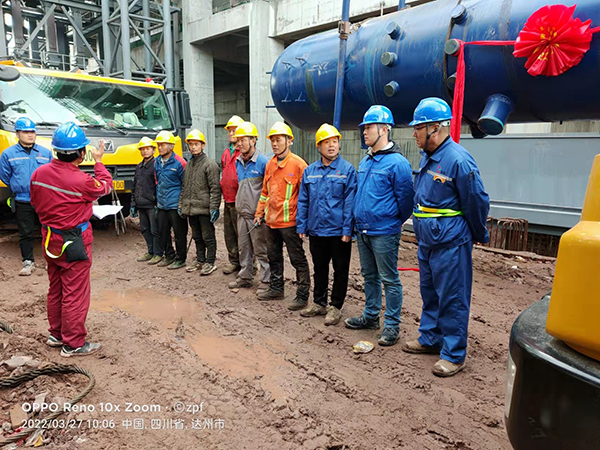 迪爾集團有限公司第三公司承建的宣漢縣生活垃圾焚燒發(fā)電項目,1#鍋爐汽包和頂板梁分別于2022年3月27日10時27分、3月27日12點7分順利吊裝完成。