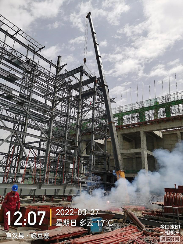 宣漢項目1#鍋爐汽包、頂板梁吊裝順利完成