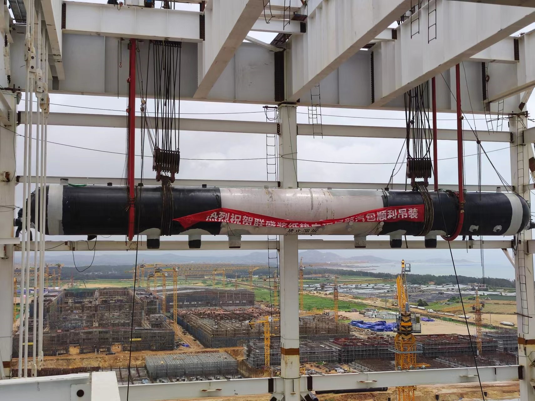 2022年6月4日11:00,迪爾集團有限公司第一公司承建的聯(lián)盛漿紙(漳州)2×670t/h高溫超高壓循環(huán)流化床+1×200MW抽凝式汽輪發(fā)電機組+1×80MW抽背壓式汽輪發(fā)電機組熱電聯(lián)產(chǎn)項目1#鍋爐汽包順利吊裝就位,1#鍋爐受熱面安裝工作將全面展開。