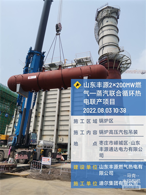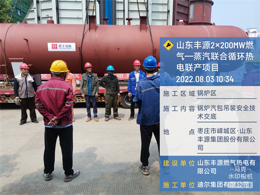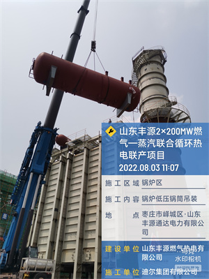 迪爾集團(tuán)有限公司第二公司承建的山東豐源燃?xì)鉄犭娐?lián)產(chǎn)項(xiàng)目,1#余熱鍋爐高低壓鍋筒吊裝完成,高低壓鍋筒吊裝標(biāo)志著鍋爐連接管路的施工開(kāi)始,也為下一步鍋爐水壓實(shí)驗(yàn)奠定了堅(jiān)實(shí)的基礎(chǔ)。