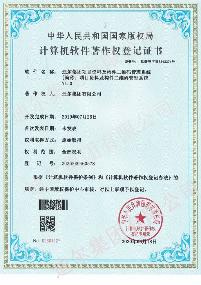 2020年5月23日,公司自主設(shè)計(jì)開(kāi)發(fā)并實(shí)施應(yīng)用的五個(gè)信息化管理系統(tǒng):綜合數(shù)據(jù)分析平臺(tái)、勞務(wù)實(shí)名制管理系統(tǒng)、質(zhì)量安全隱患排查管理系統(tǒng)、電子商務(wù)物資集采平臺(tái)、項(xiàng)目資料及構(gòu)件二維碼管理系統(tǒng),均獲得國(guó)家版權(quán)局計(jì)算機(jī)軟件著作權(quán)。