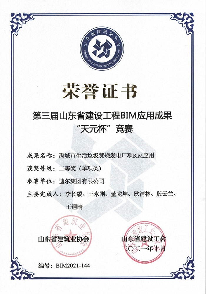 山東省建設(shè)工程BIM應(yīng)用成果“天元杯”競賽由山東省建設(shè)工會和山東省建筑業(yè)協(xié)會聯(lián)合舉辦,旨在促進BIM技術(shù)在我省建筑行業(yè)廣泛深入應(yīng)用,培養(yǎng)高水平BIM技術(shù)應(yīng)用人才,加快BIM技術(shù)的自主創(chuàng)新和工程實踐。迪爾集團堅持智慧建造和綠色發(fā)展,時刻踐行“做社會進步的智造者”的社會性理念。此次榮譽的取得,是對公司自主創(chuàng)新能力的進一步肯定,公司將在今后的發(fā)展道路中,再接再厲,不斷提升BIM技術(shù)深化應(yīng)用能力,為BIM技術(shù)在工程建設(shè)領(lǐng)域的推廣做出更大貢獻。
