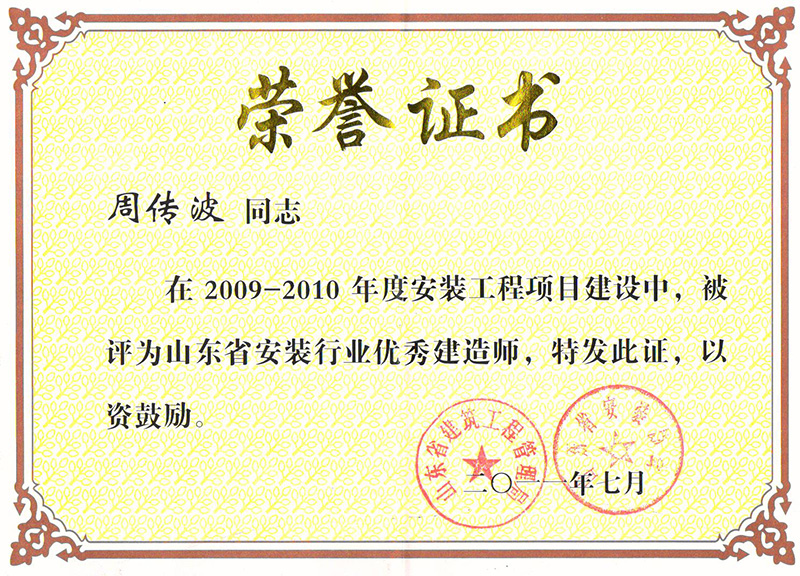 Certificate of honor