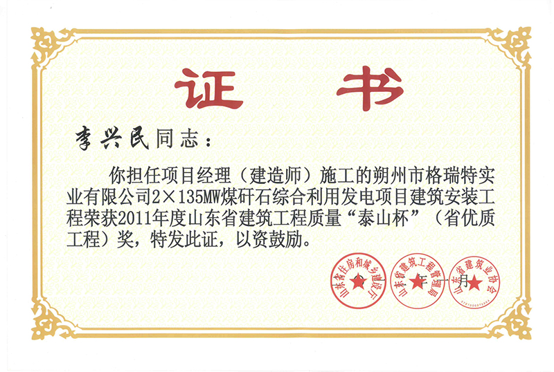 Certificate of honor
