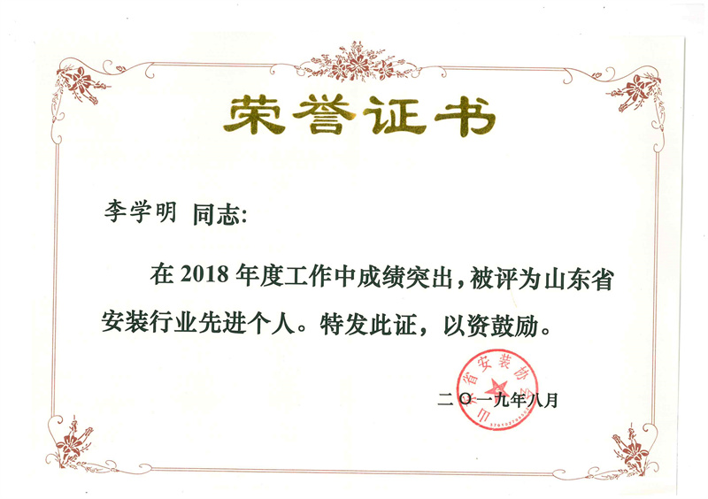 Certificate of honor