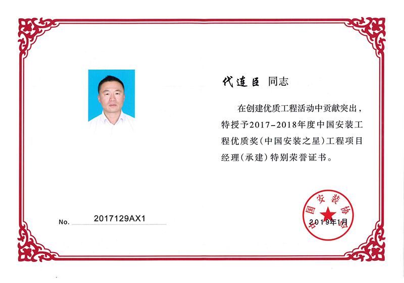 Certificate of honor