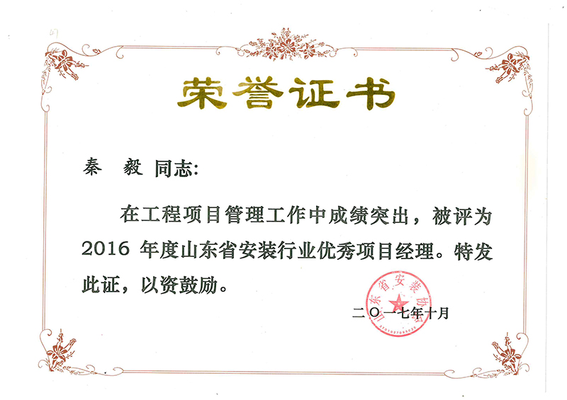Certificate of honor